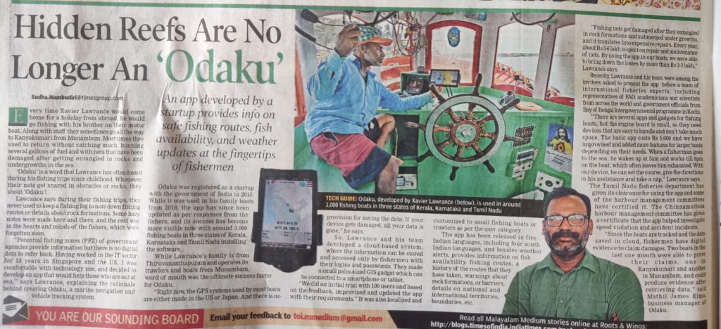 India Times newspaper recently published an article about our ‘Odaku Marine GPS’ product.